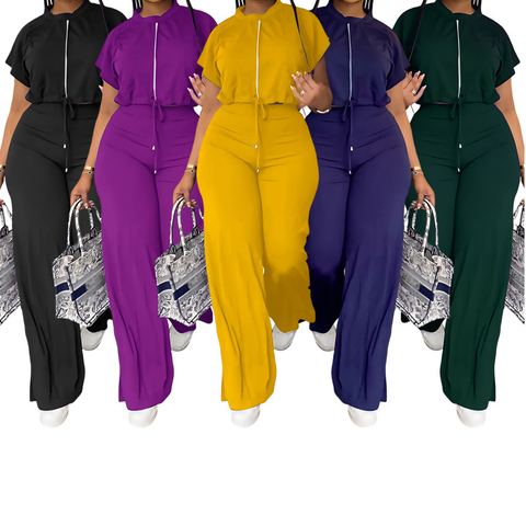 Women's Summer 2-Piece Set Loose-Fitting Knitting Fabric Casual Style Top and Pants With Stand Collar